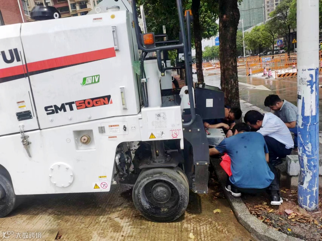 ▌广东多变的天气让我们措手不及,在去往客户另一施工地点时,突然下起大雨,服务队冒雨马不停蹄赶往目的地。