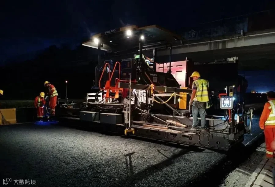 沃尔沃摊铺机灯光照明夜间全方位视野施工