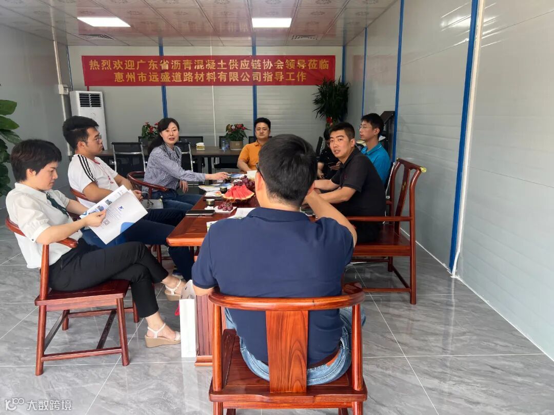 5月20日,广东省沥青混凝土供应链协会秘书长袁慧芳,副秘书长翁爱丽、施连杰莅临惠州市远盛道路材料有限公司指导工作,广东远沃董事长王前进、总经理刘刚、惠州远盛负责人王明东等一行对远道而来的贵宾表示热烈的欢迎。