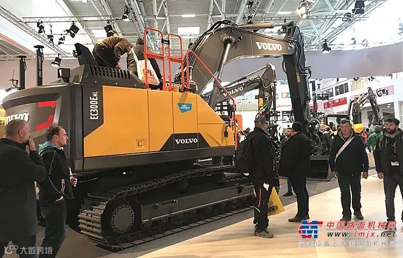 观众围绕着沃尔沃EC300E混合动力挖掘机