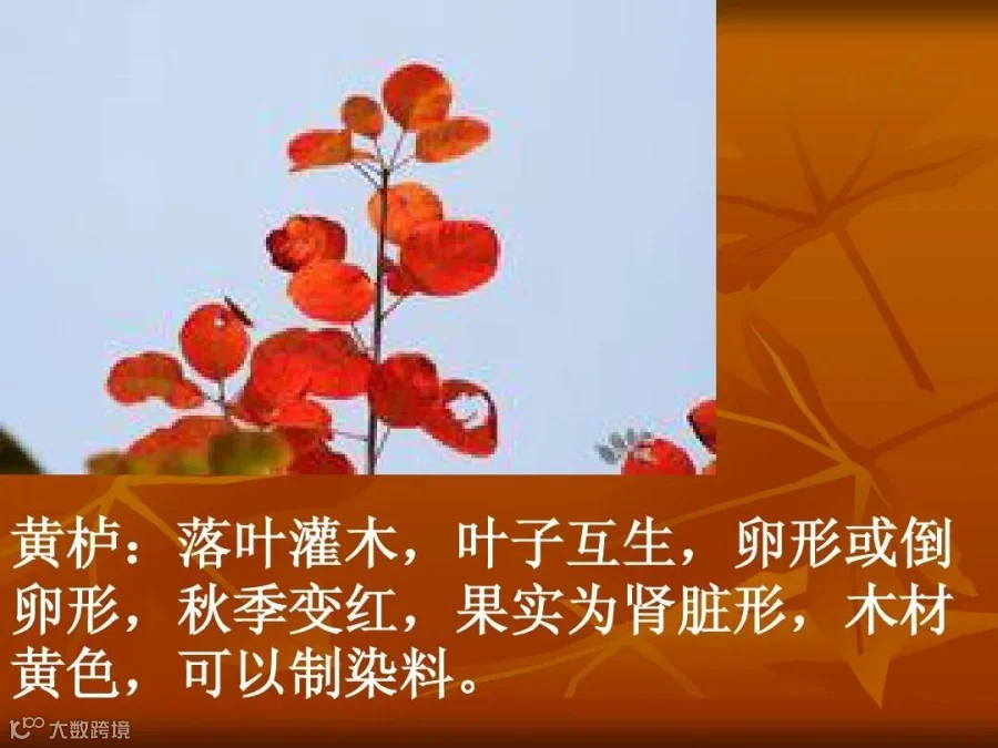 黄栌,又名栌木,漆树科落叶植物,分布于我国东北部和中部,木材可制器具,兼用于提取黄色染料。染色方法据《天工开物》记载:先用黄栌煎水染,再用麻秆灰淋出的碱水漂洗。栌木中含一种叫非瑟酮的色素,染出的黄色在日光下是略泛红光的黄色,在烛光下是泛黄光的赤色。这种神秘的光照色差,使它成为最高贵的服色染料,自隋到明一直是“天子所服”。