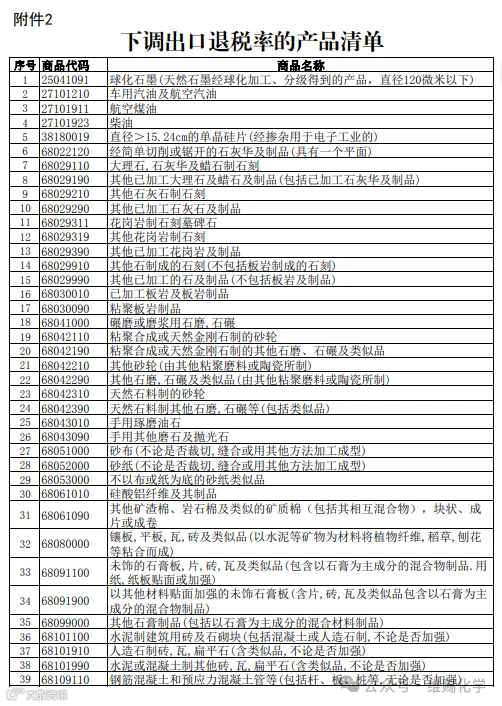 二、将部分成品油、光伏、电池、部分非金属矿物制品的出口退税率由13%下调至9%。