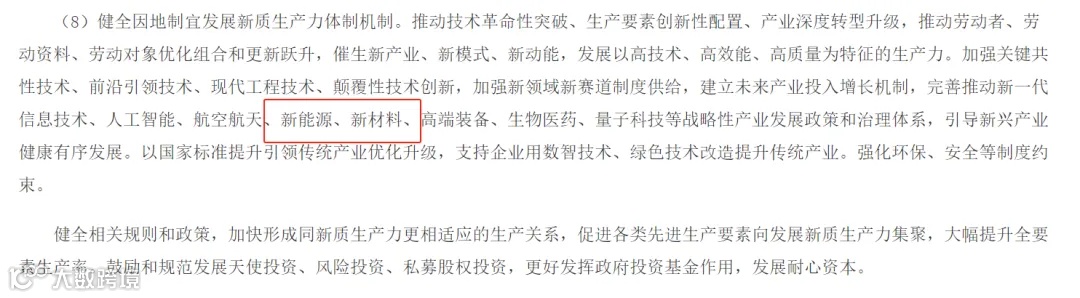 以下是节选《决定》中健全推动经济高质量发展体制机制部分内容,提到了未来新材料等战略性产业发展政策和治理体系以及先进材料等重点产业链发展体制机制。