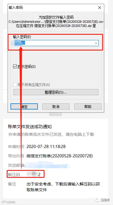12、这时候记得去微信支付中收取一个验证码,以便收到邮件后解压用