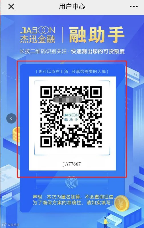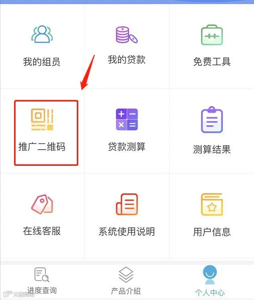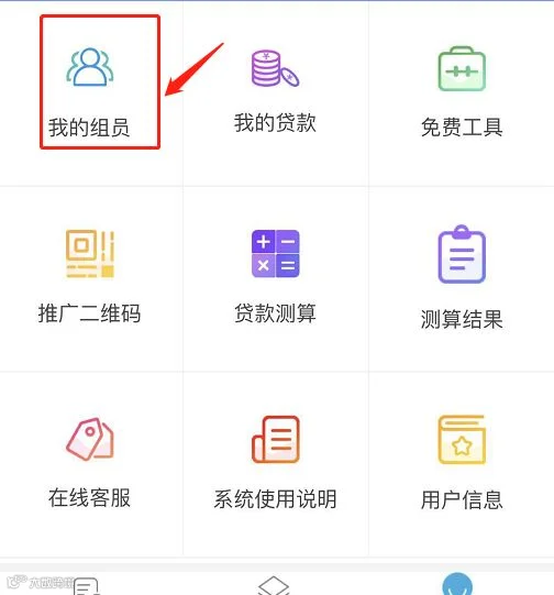 点击“额度测算”---“推广二维码”---再将自己的二维码推荐给自己的客户,让客户通过扫码关注公众号---点击“我的组员”即可查看自己名下的客户