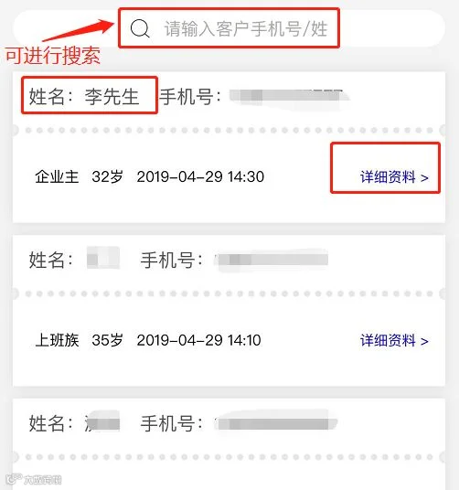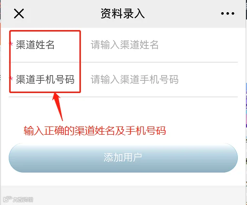 例:帮渠道经理张三录入客户资料,则填写张三的姓名及手机号