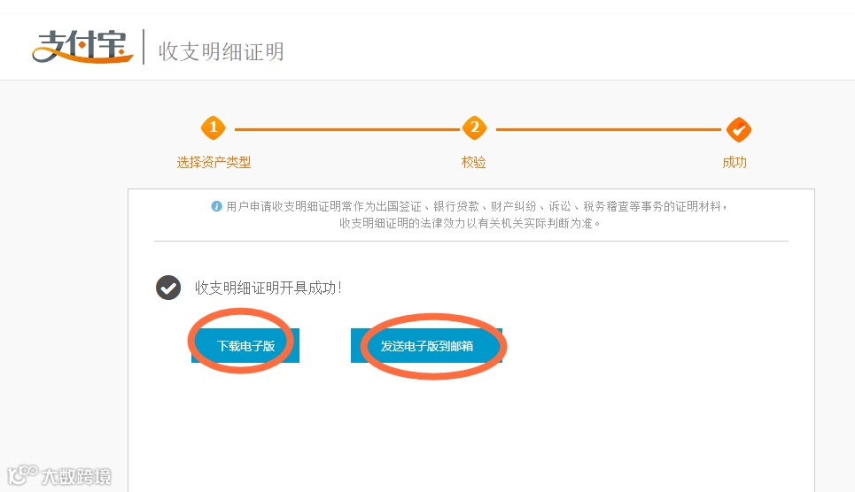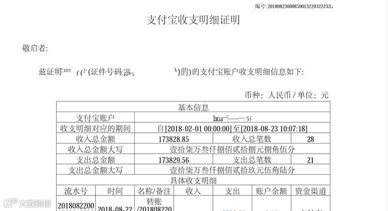 第六步,查看下载的电子版流水明细,结果如下图,带有支付宝公司公章,打印出来提交给银行即可