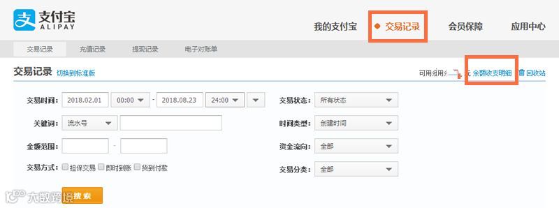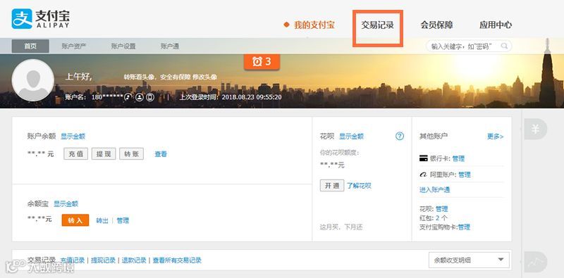第一步,登录网页版支付宝官网,点击“交易记录”