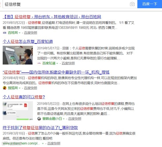近期兴起了一种新的业务——“征信修复”。百度搜索一下征信修复,在首页便出现多条征信修复的广告:“消除征信污点,重新做人!”
