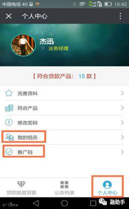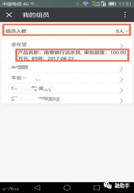 第五步:点击“我的组员”,查看名下客户情况,客户成功申请贷款,可在此入查看结果。