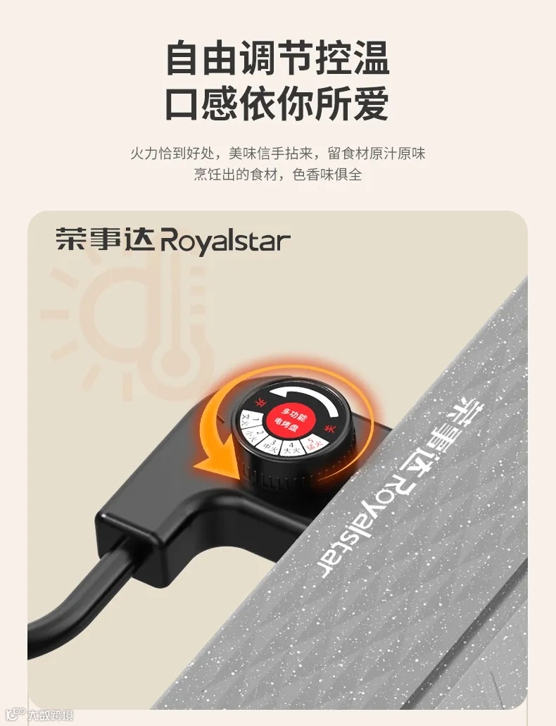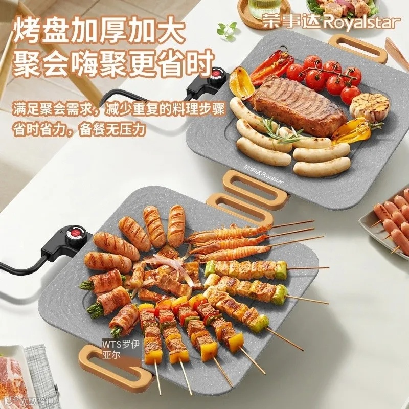 荣事达电烧烤炉,方形设计,简约而不失大气,集多功能于一体,是家庭聚餐与户外烧烤的理想之选。无论是铁板烧的滋滋作响,还是烤肉的香气四溢,都能轻松驾驭,满足您对美食的所有幻想。