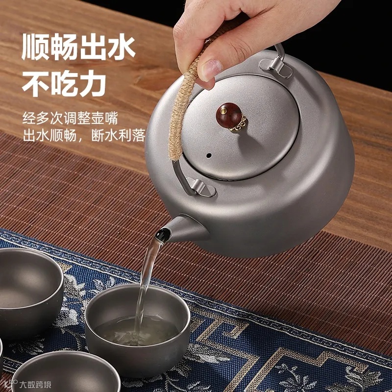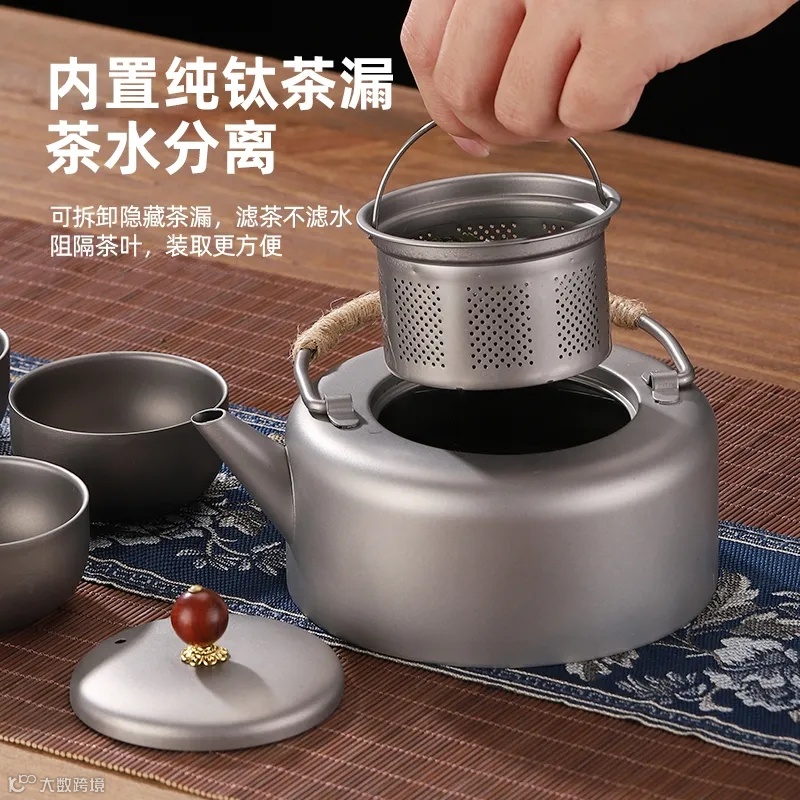 精选纯钛材质,轻盈坚固,耐腐蚀,耐高温,无论是山川湖海,还是草原林间,都能轻松携带,无惧旅途颠簸。套装设计精巧,包含茶壶、茶杯及便携收纳盒,一应俱全,满足您户外品茶的所有需求。