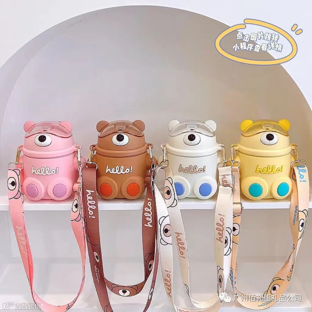 乐尚星的这款保温杯,小熊造型软萌可爱,搭配宽边背带,背在身上真的巨拉风好伐