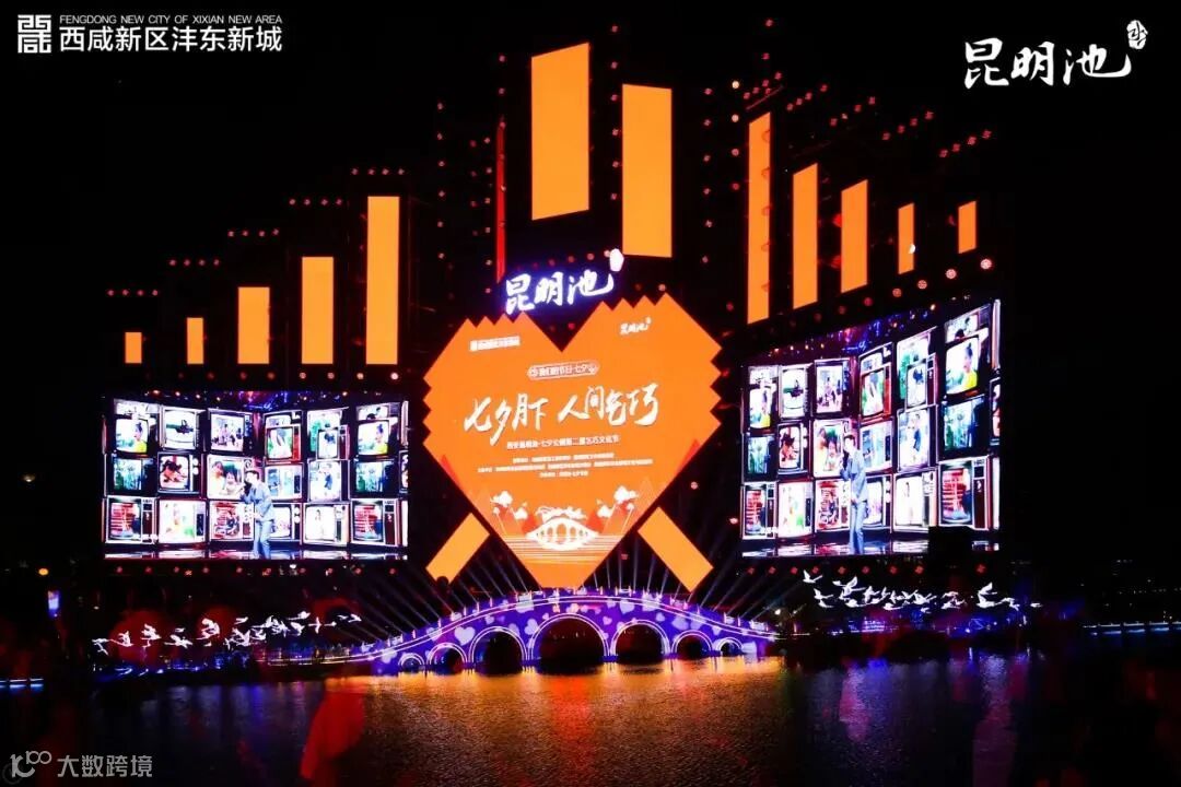 晚上还有七夕主题晚会,晚会以传统晚会为框架,加入了影视化拍摄等多种视听手段,配合精心打磨舞美灯光设计美轮美奂,引人入胜,引得在场的游客无不驻足观看,晚会节目表演以舞蹈为媒介,以歌声为载体,传播中华传统文化。