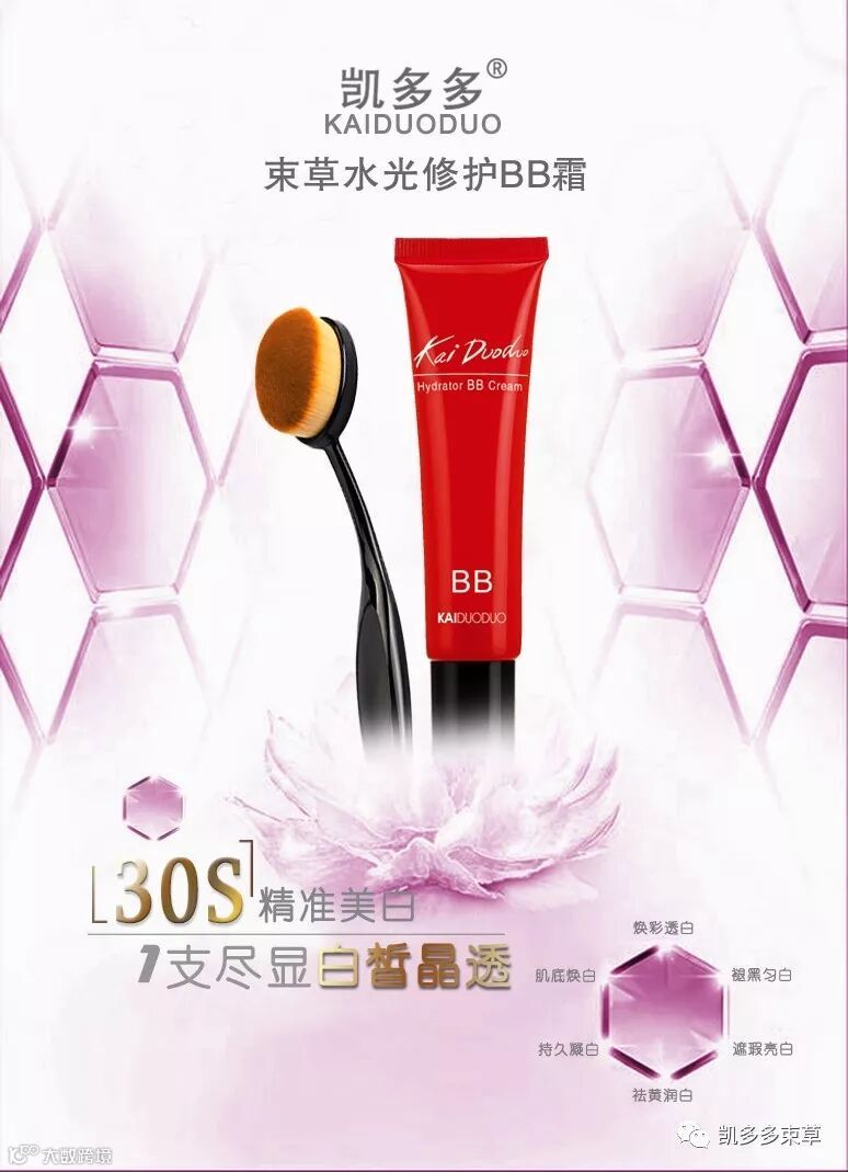 凯多多束草凯多多束草水光修护BB霜质地轻薄丝滑,拥有良好延展性,一抹易推开,准确贴合面部,上妆更轻松早到晚,上镜妆容时刻在线上妆鲜亮:减轻黄气,越久越美丽,妆容持久光鲜不暗沉卸妆透亮:养肤同时提亮肤色,卸妆后也有透亮肌一抹好气色,上妆更服帖选对BB 体验不一样的美肤