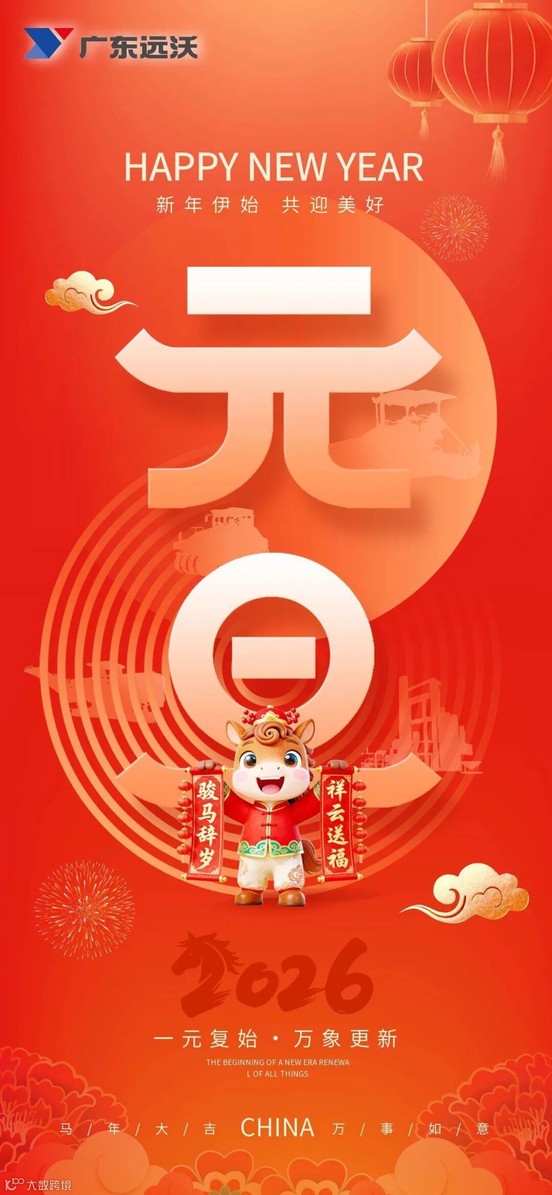 当冬日的暖阳驱散旧岁的余韵,2026 年的钟声已如约敲响。在这满载希望的时刻,广东远沃向每一位支持“沃”们的客户、并肩奋斗的伙伴,以及默默付出的远沃家人,致以最温暖的元旦祝福!