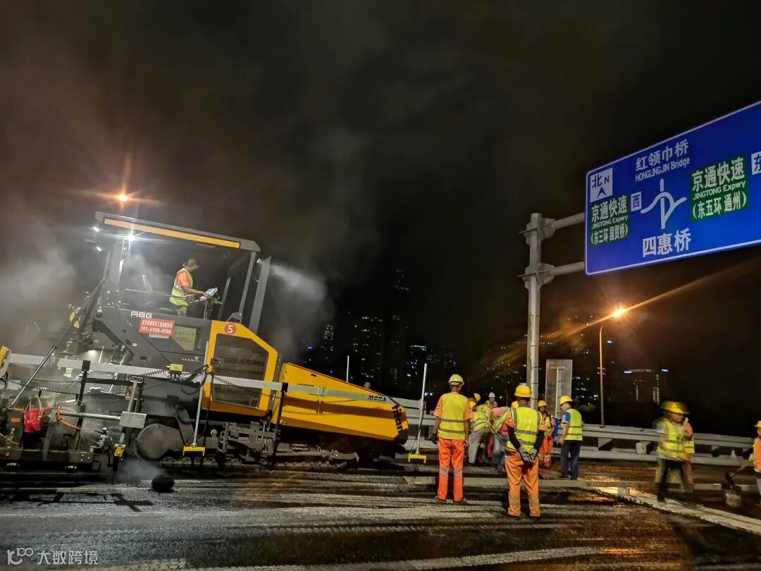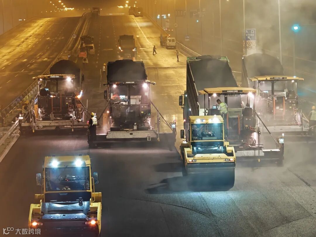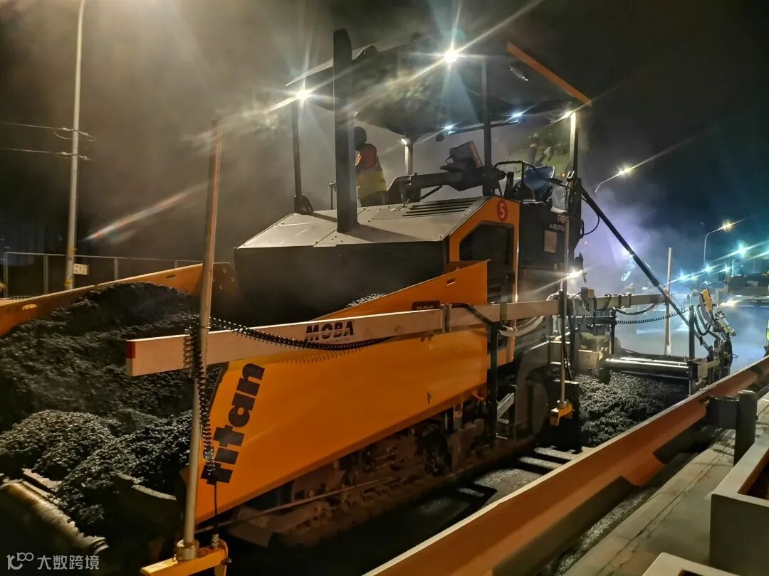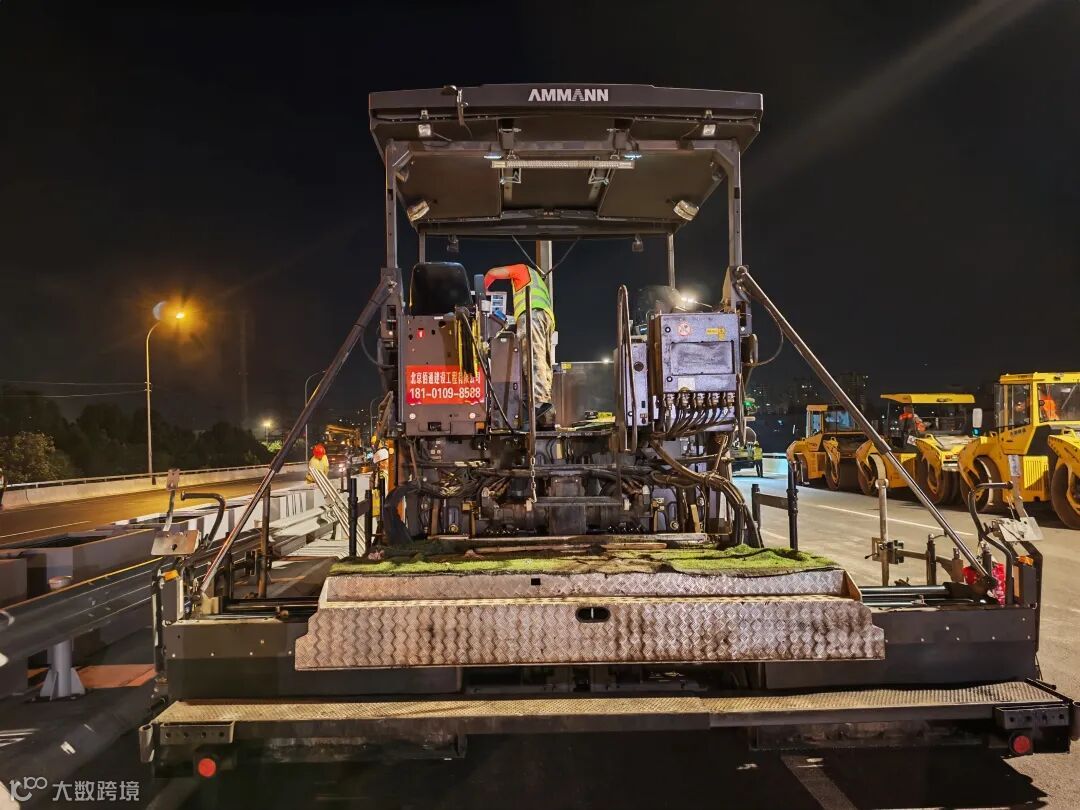 任务重、施工难度大,造成主体工程被推迟。直到2025年6月30日,路面施工才正式开始。而为了减少施工影响和保证通行需求,施工时间被安排在深夜时段,日间施划临时标线恢复交通。有限的作业窗口意味着对摊铺设备有更高的要求:操作效率、摊铺质量、稳定性、可靠性缺一不可。