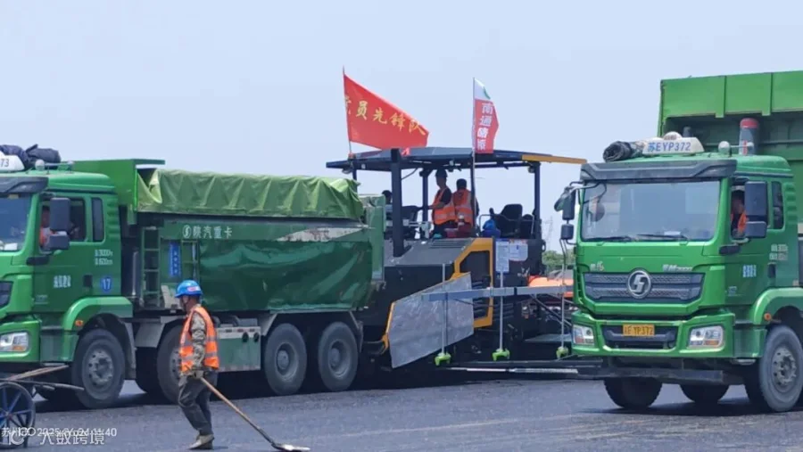 在沪武高速公路太仓至常州段扩建工程施工现场,安迈ABG摊铺机在应对高温、多车道、大面积摊铺等复杂挑战时运转稳定,摊铺层平整度与密实度均达到预期结果。