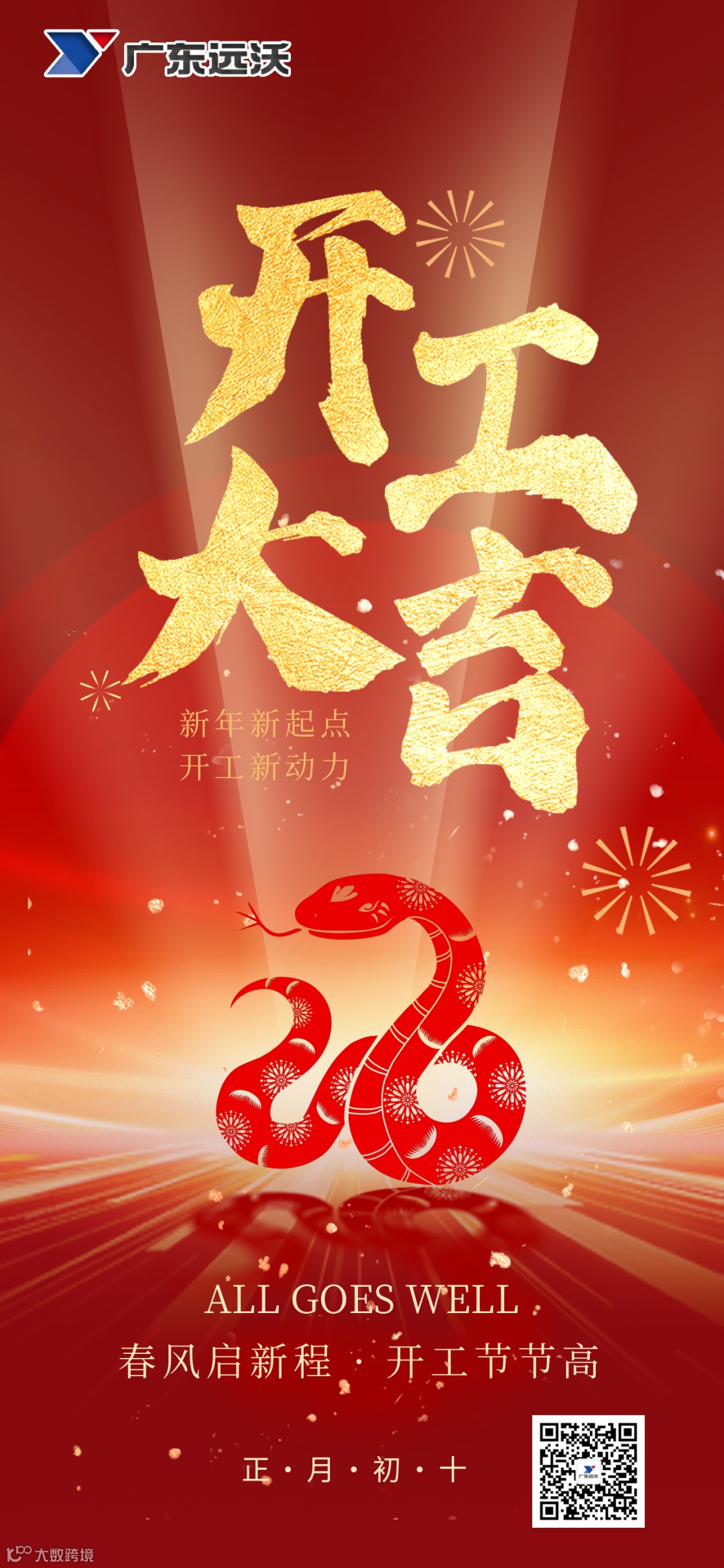 “岁启新元,工开吉日。瑞气盈门,祥光普照。愿诸事顺遂,生意兴隆,如日方升,似云出岫。以匠心铸品质,凭勤勉拓宏图,共赴锦绣前程,同享盛世繁华。”