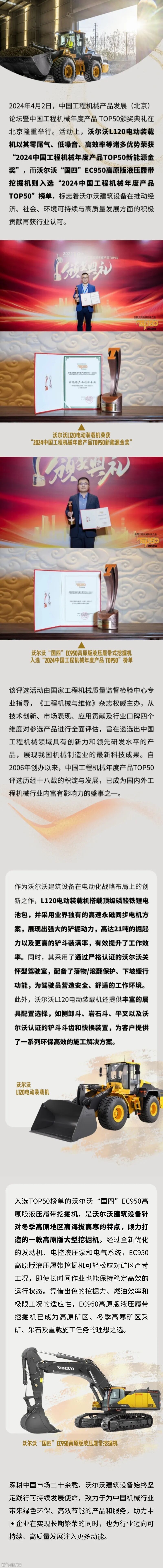 品牌聚焦 | 中国工程机械年度产品TOP50揭晓,沃尔沃建筑设备荣获两项大奖