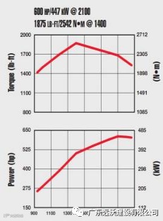 最大功率: 455kW / 610 HP @1900 rpm