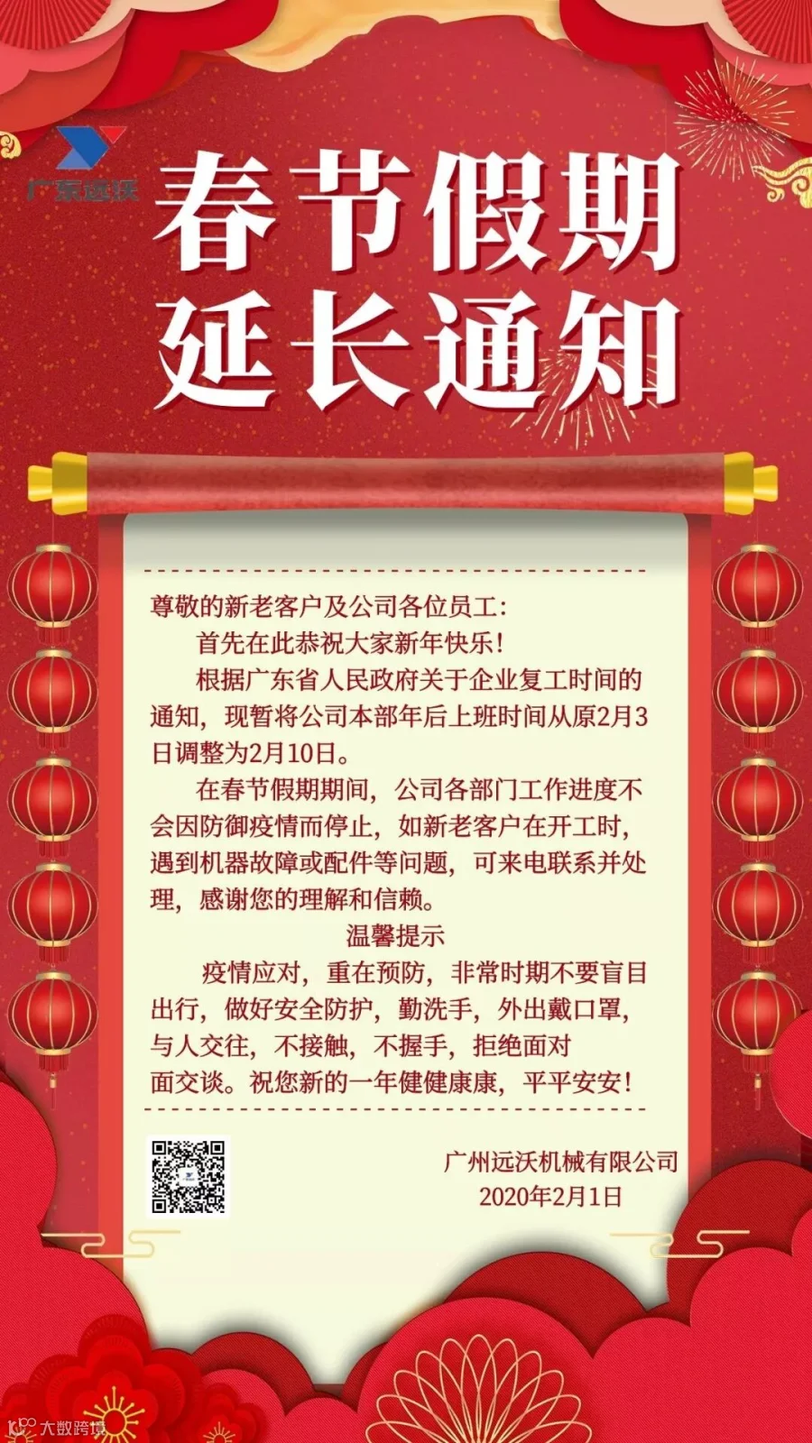 广东远沃复工调整通知