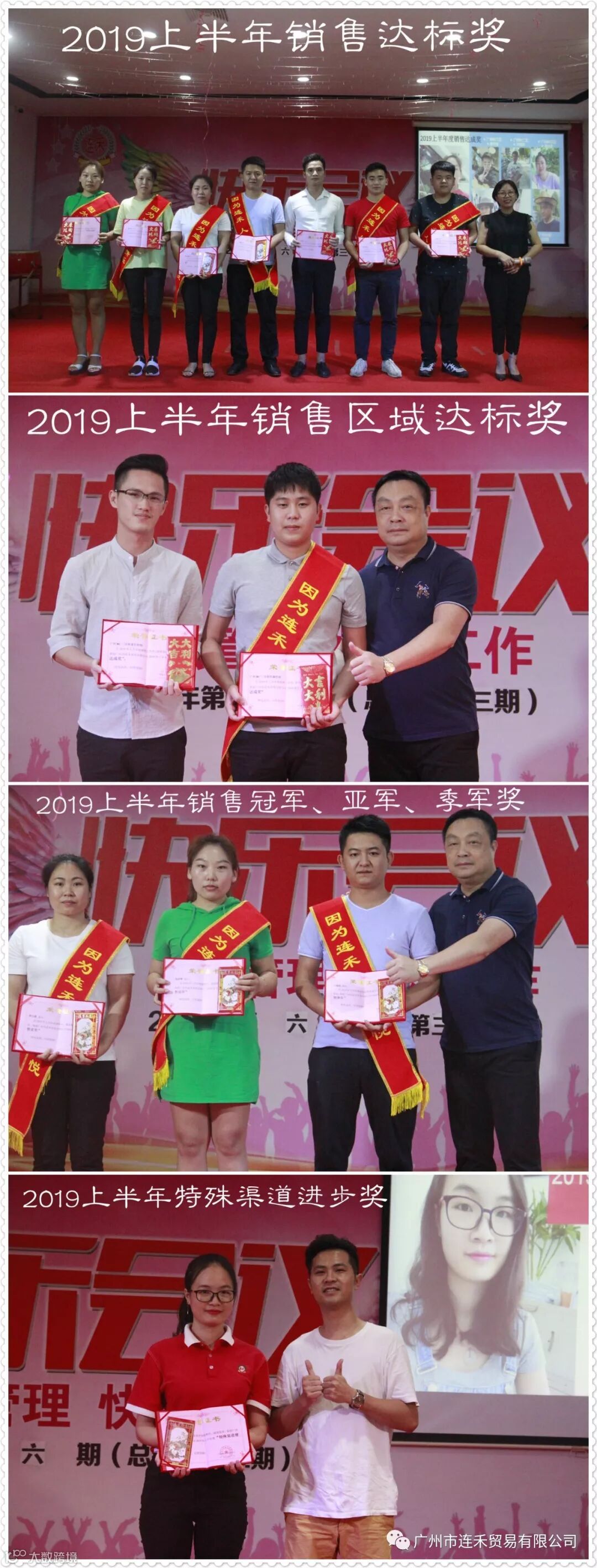 “一份耕耘 一份收获”,获得上半年销售达标的精英们正在接受表彰,这是属于你们的荣耀时刻。