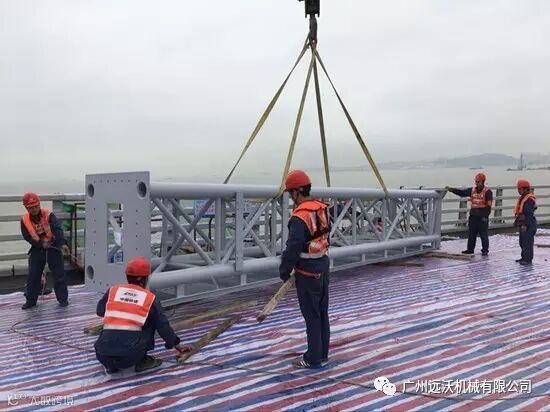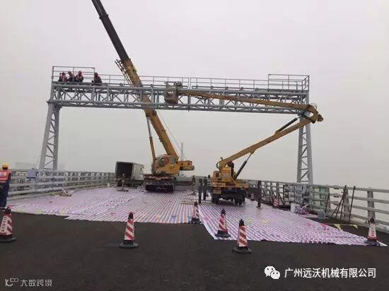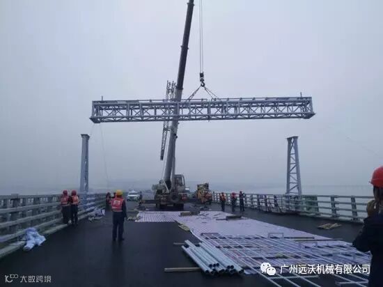 为保质保量完成该施工任务,交通工程建设者精心组织、合理安排,克服了大雾等不利气候条件,顺利完成大桥右幅可变信息标志首个龙门架的吊装作业。此次施工为交通工程情报板、车道指示标志、限速标志等设备的安装积累了经验,标志着港珠澳大桥交通工程桥面设备安装工作全面展开。