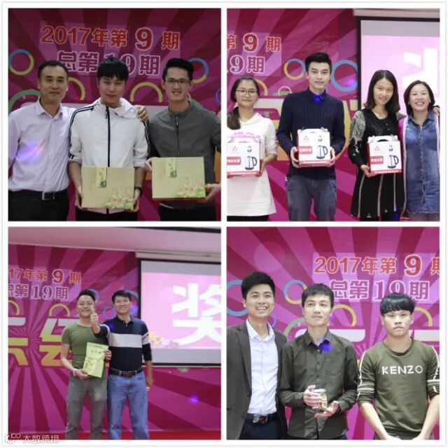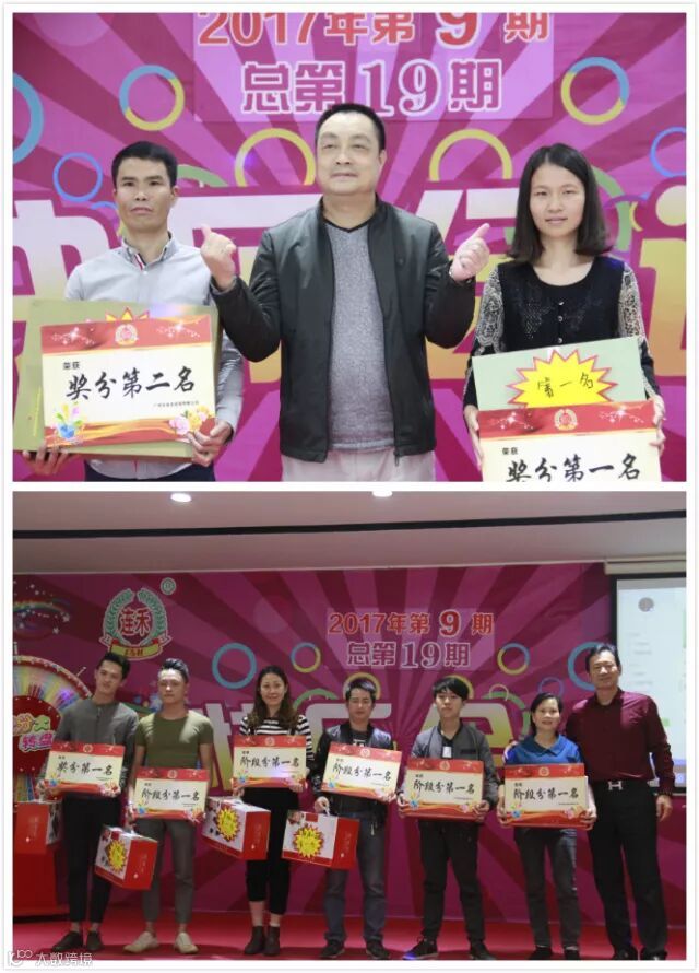 荣获阶段积分第一名,第二名的优秀家人们正在接受着公司全体员工的表彰与奖品兑现。