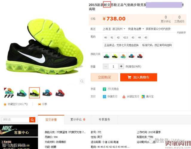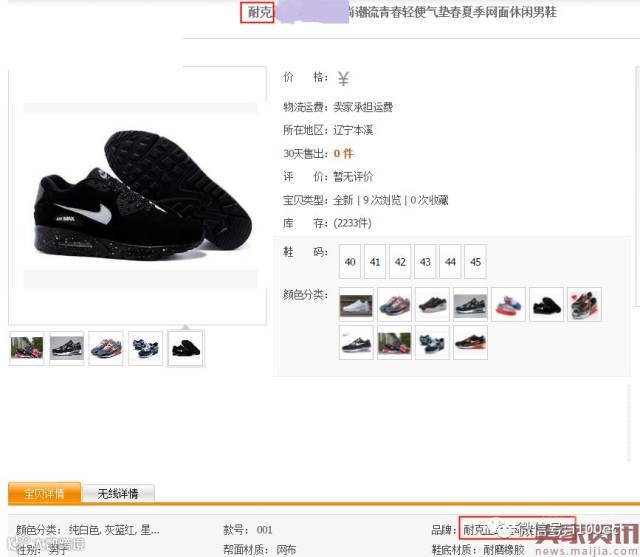 案例3:标题填写品牌“耐克”,品牌属性填写非标准输入品牌“耐克正品运动鞋气垫春夏季网面男鞋”(标准品牌Nike/耐克)。