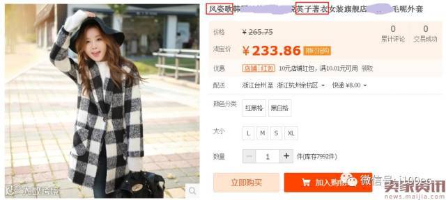 案例:标题填写一个注册品牌“风姿歌”,另一个未注册成功品牌“英子著衣”。