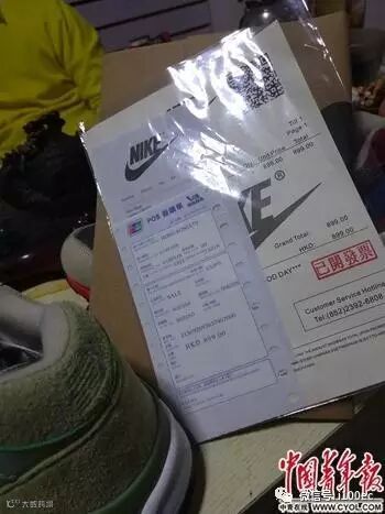 10号摊位在电商城南门附近,位置极佳,一进快递专区就映入眼帘。“晚上11点人最多。”女服务员把一叠叠耐克、阿迪达斯的包装、发票甚至POS机的签购单摆了出来,“20元可以买一大包”,还有能刮开涂层的防伪标识,一张16个,每个5角。