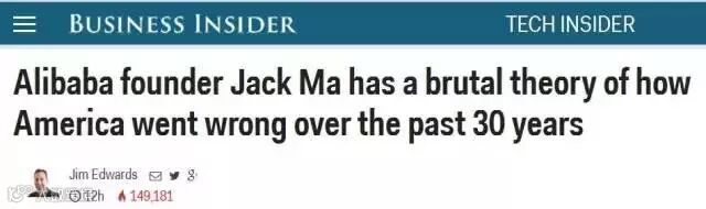 《商业内幕》:阿里巴巴创始人马云残酷实在地分析美国过去30年如何走错路