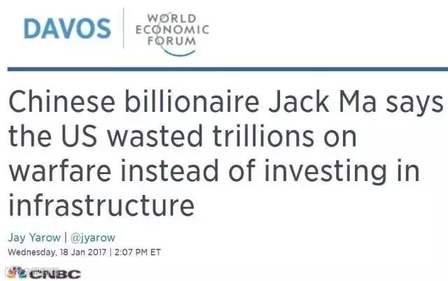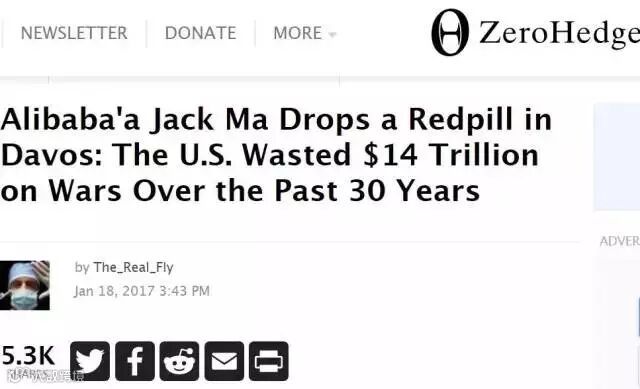 美国财经博客网站ZeroHedge:阿里巴巴马云在达沃斯投下一剂苦涩而真实的药丸:美国在过去30年在战争中浪费了14万亿美元