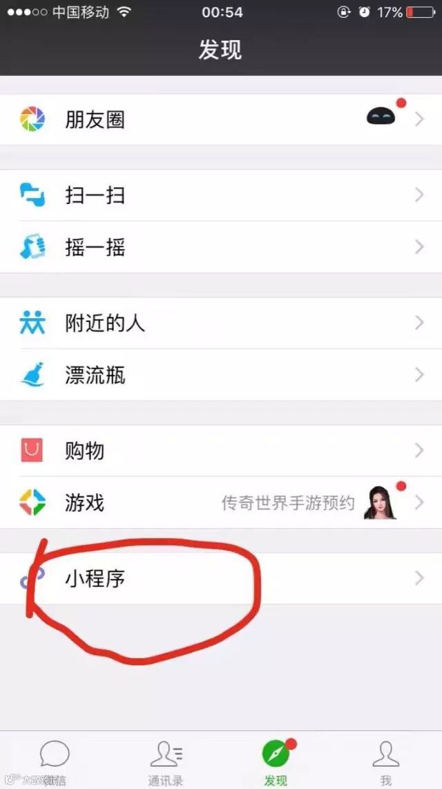 此外,在iOS中,打开小程序需要“打开微信”-“打开发现”-“打开小程序”-“打开特定小程序”四个步骤;