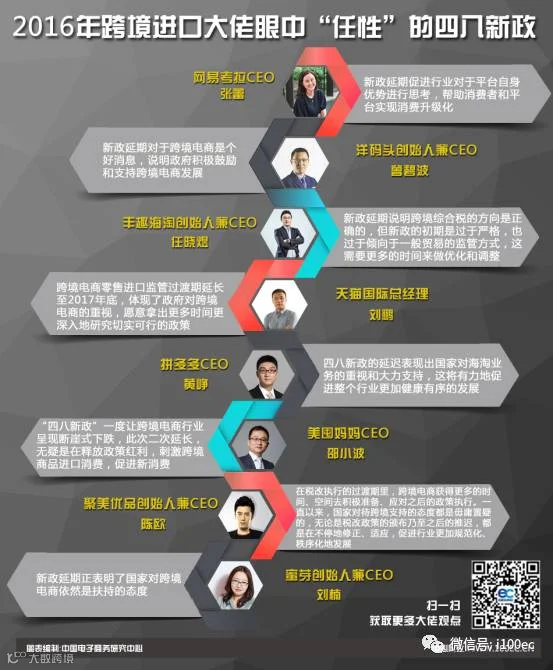 近年来,海淘火热受捧,带动了跨境进口电商行业的发展,政府也出台了一系列的政策支持和规范跨境进口电商的发展。2016年4月8日出台“四八新政”,实施跨境电子商务零售进口税收政策,并同步调整行邮税政策,而后“四八新政”被延期,又引起跨境进口电商界的小震荡。“四八新政”延期对跨境电商是否有影响,中国电子商务研究中心(100EC.CN)通过跨境进口电商大佬访谈,探究出了大佬们对新政的延迟表现出积极的态度,以下带来大佬们经典观点回顾。