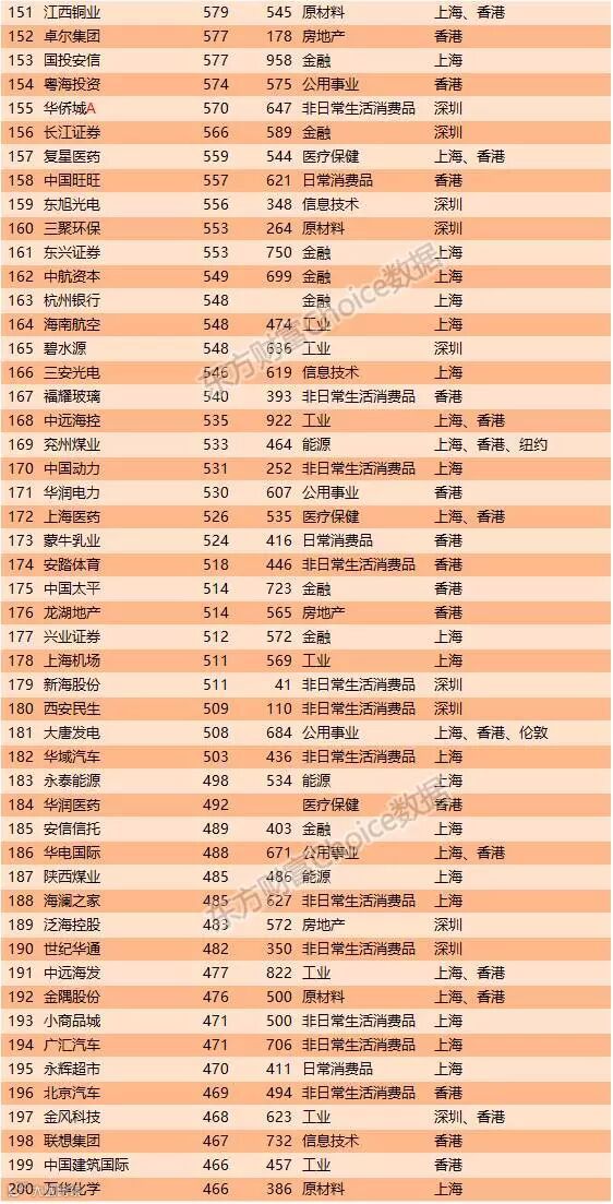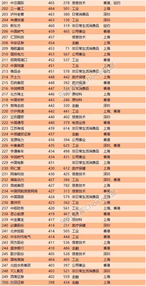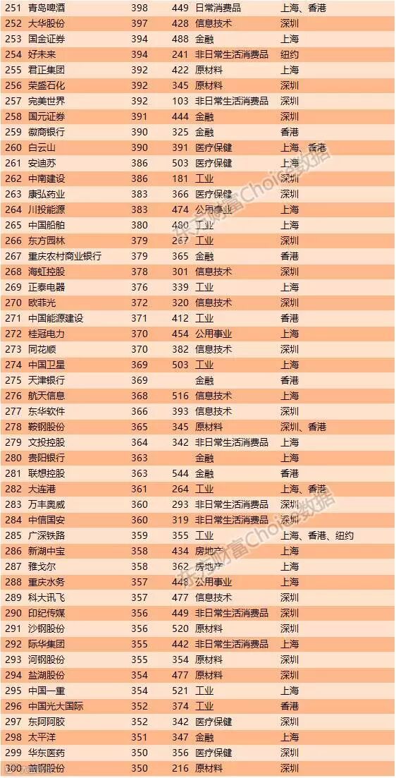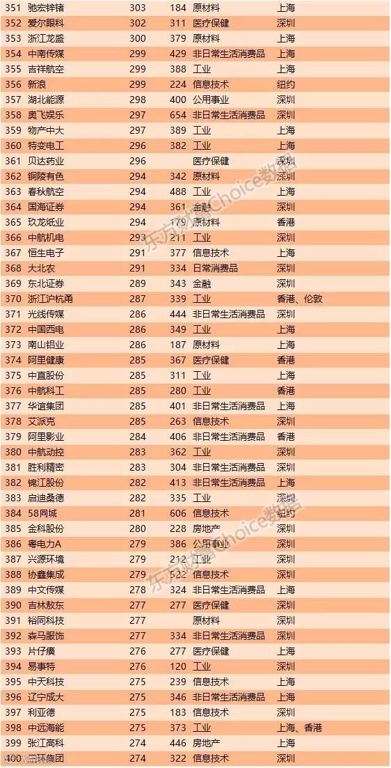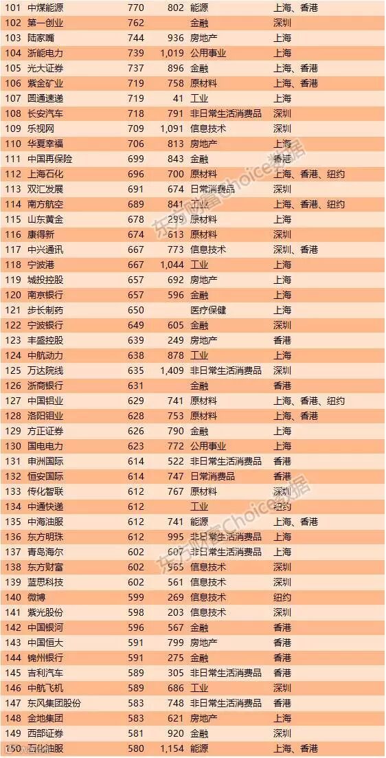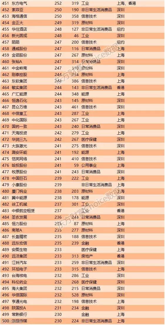 互联网科技公司表现出色,信息技术有63家上榜,电信业务有5家上榜。其他科技公司,中国电信排名第二十七名,市值2592亿人民币,京东排名第二十九名,市值2531亿人民币,网易排名第三十四名,市值2038亿人民币,中国联通排名第三十六名,市值1934亿人民币,美的集团排名第三十九名,市值1810亿人民币,格力电器排名第四十七名,市值1481亿人民币等。这也意味着经济市场已经进入到互联网科技企业高速发展的轨道中,传统的银行与石油化工的经营模式已经不再被看好!而互联网企业也从过去的追赶者,颠覆者,变成了今天经济的领跑者!这一点,大家一定要看懂!(这是一个未来的趋势)