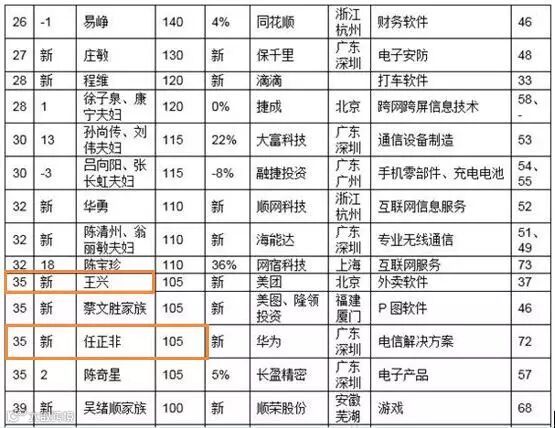但奇怪的是,即使这样一份“范围狭窄”的富豪榜,任正非依然没有出现在前十,前二十也没有,前三十还是没有,再下拉,才能看到这位华为创始人以身价105亿元排在倒数第12位,而且是第一次上榜,为此,胡润研究院特别标记一个字:“新”。