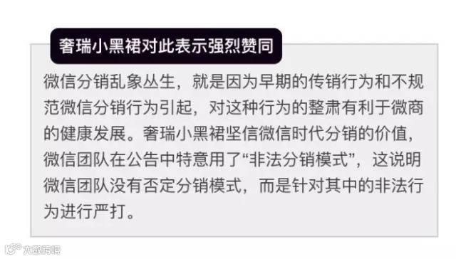 表示“支持健康规范的微商发展模式,为消费者提供个性化电子商务服务,刺激网络消费持续增长。”