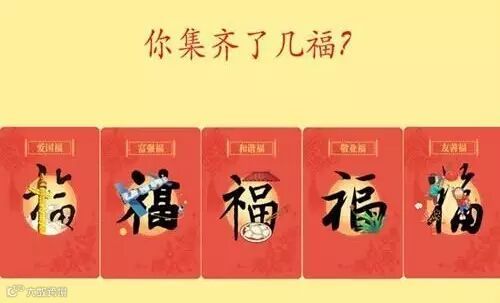 集“五福”当作娱乐就好了,让“换福”成为很久没联系的朋友之间的一座桥梁,才是新年里真正的快乐,而自己真正做到“富强”、“和谐”、“友善”、“爱国”、“敬业”也才是福气所在。