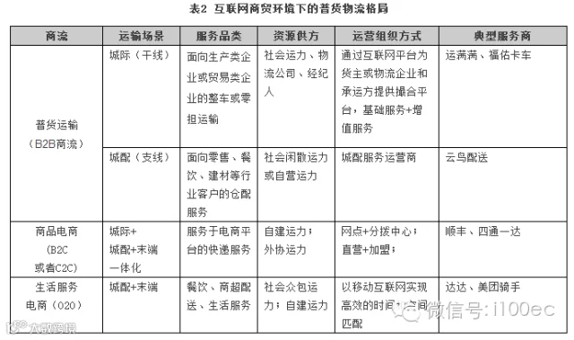表2简单总结了互联网商贸环境下普货物流的基本格局。
