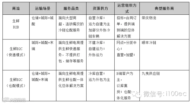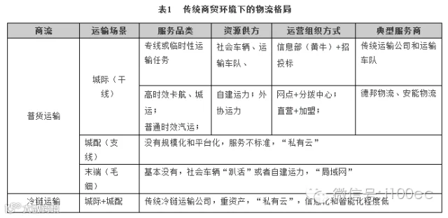表3简单总结了互联网商贸环境下冷链运输的基本格局。