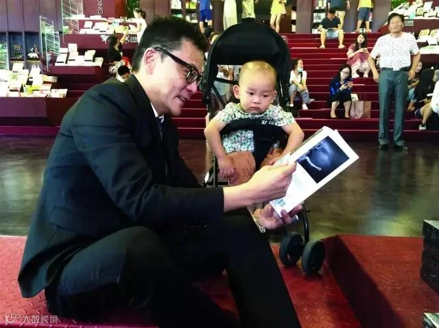 当当梅溪书店开业当天,李国庆和小孩在一起