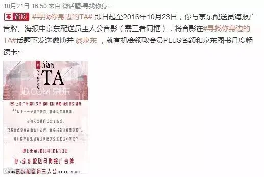 当“红的故事”还在引发更大故事的同时,京东趁热打铁,在线上发起#寻找你身边的TA#的活动,活动将“在你身边”广告、主角配送员激活,上升为一项全民寻“星”运动,试图在线下建立配送员与用户之间的情感连接。从最后参与活动的用户来看,这次线下活动吸引众多用户的积极参与,使得京东配送员一时成了众人拍照合影的“大明星”。