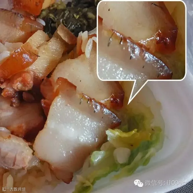 不敢再来一单容我忍受了40-50分钟。。。然后我收到了传说中的卤肉饭(猪毛饭)。。。皮上面全是黑毛。。。