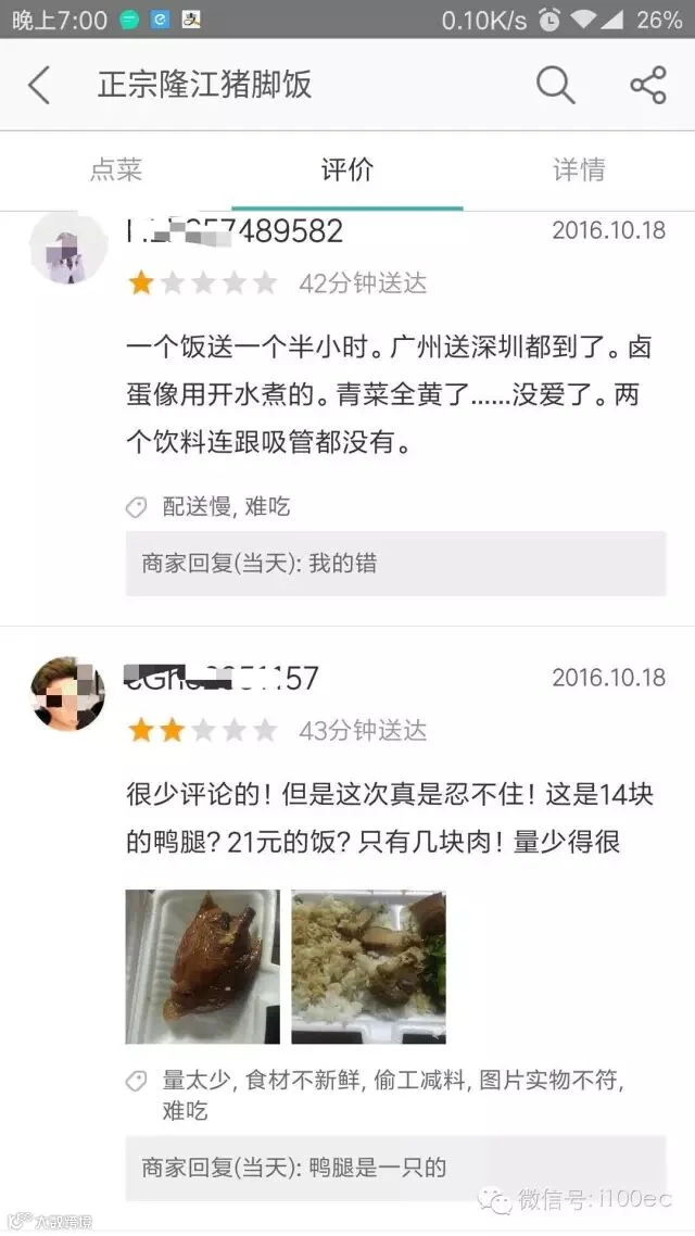据中国电子商务研究中心(100EC.CN)了解到,事情的起因是一位电商从业者点了份美团外卖上的猪脚饭......