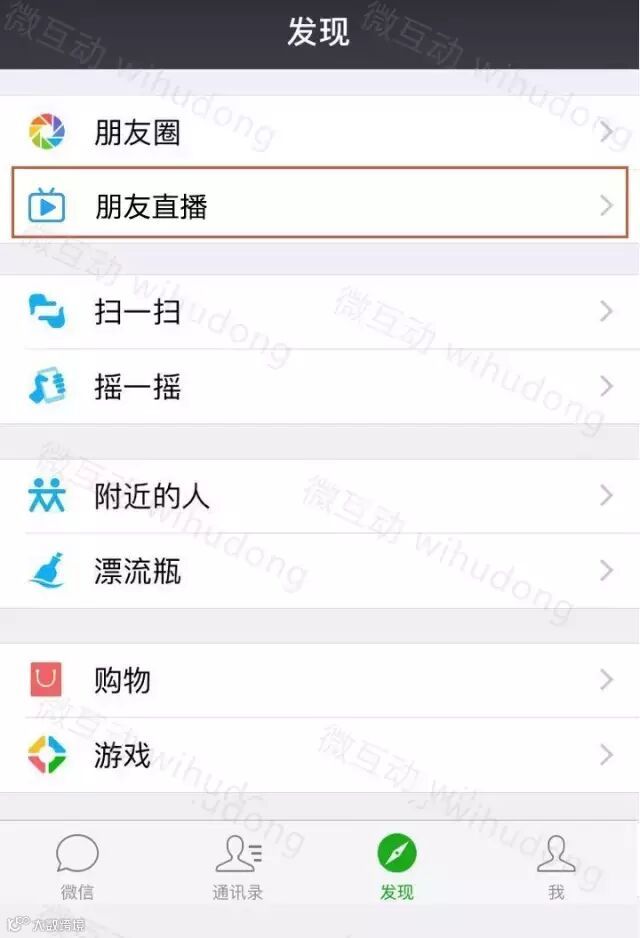 用户可以通过点击朋友“发现”界面的“朋友直播”,设置好主题后开始进行视频直播,还可以将直播同步到朋友圈。