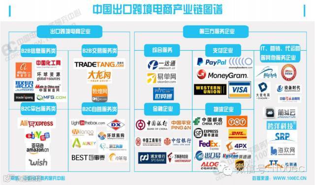 据中国跨境电商网(www.100ec.cn/zt/wmds)企业数据库监测显示,随着政策利好不断,跨境电商行业地位提升,逐渐成为对冲出口增速下台阶的利器。在出口跨境电商市场中,包括像亚马逊、eBay、全球速卖通、敦煌网、Wish等平台型企业;跨境通、兰亭集势、米兰网、DX、TinyDeal、PandaWill、小笨鸟、有棵树、傲基国际、执御等独立B2C平台;阿里巴巴国际站、生意宝国际站、焦点科技国际站、MFG.com、大龙网、易唐网等综合B2B平台;一达通、四海商舟、出口易、俄速通、递四方、传神、外运发展等服务商。