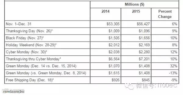 绿色星期一、网络星期一和黑色星期五同比增长占前三位,分别为32%、12%和10%。