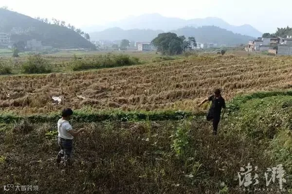 2016年11月17日,江西吉安永丰县石马镇严辉村,范家发骑车出门了,妈妈和妻子在院子里目送他。
